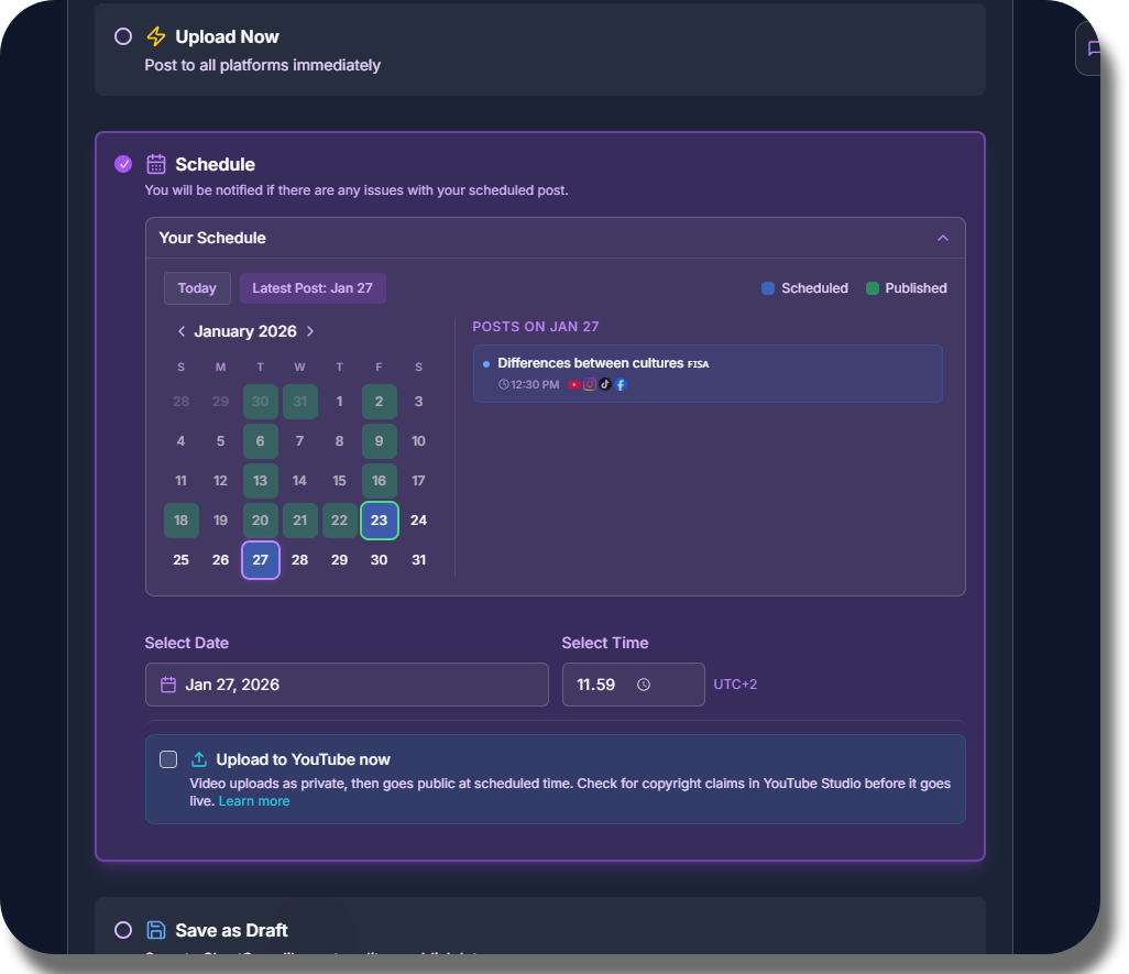- 4.Your video will be automatically posted at the scheduled time